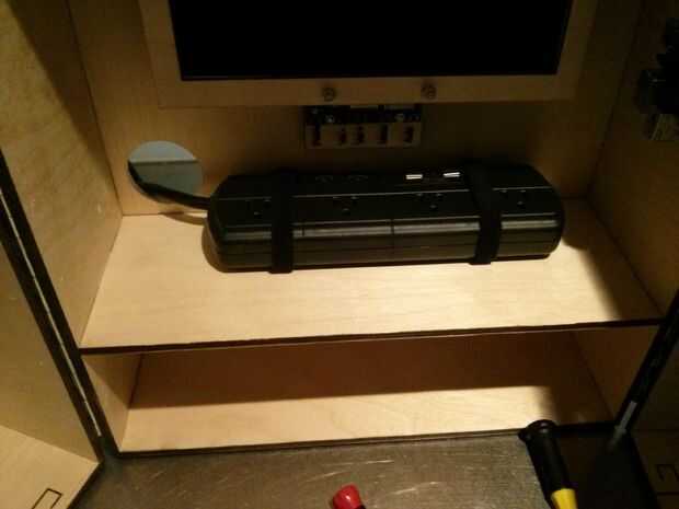 Empezar con el monitor. Es la pieza más grande y no puede ser obstruido. Una vez que esté en su lugar, configurar la barra de energía. Es el más complicado y requiere más pensamiento. Creo que hay sólo dos opciones reales, en el estante inferior, o a lo largo de uno de los lados. Decidí montar mina en el estante inferior. Desde aquí, usted tendrá que considerar:
