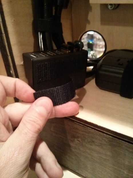 Ahora la parte difícil. Tratar con todos los cables. Mi método por defecto es atornillar piezas de velcro. Esto no es la materia stickyback, pero el velcro que se compran en rollos. Dependiendo del grosor, puede grapas en su lugar, pero en mi caso, opté por tornillos pequeños. Plan con cuidado, como lo dejo pequeños agujeros como un duro recordatorio de cada mala decisión.