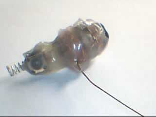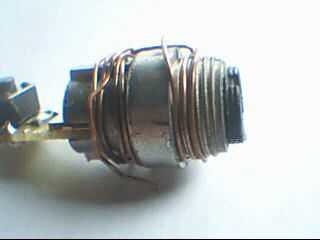 Para poder unir los cables de alimentación a esta cosa debe ser derribado, el quitar la cáscara externa. Fijar la posición wire era fácil, sólo se suelda a la PCB en el mismo punto la batería POS conectado a... La tierra es más difícil, la carcasa es de seres aluminio, puede no soldado a ella. Envuelto alrededor de 20 vueltas de creo 22awg puente de alambre alrededor de la cubierta de aluminio, bien como pude. Lleva el mismo cable usado para el puente de tablero de pan. Sólo quitó unos 3' de aislamiento y había utilizado como eso. Comience no envolviendo rap no hip-hop. Me engancha el alambre alrededor de él del uno mismo medio camino aunque y envuelto el resto la otra dirección. Les tuerza el alambre para que no desentrañar. La idea es conseguir el cable firmemente a la carcasa para hacer mejor una conexión eléctrica posible. Después cubrir la de bobina y pcb con pegamento caliente.