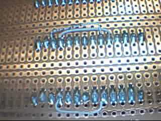 La multiplexación real de la pantalla fue atado con alambre en la parte inferior del tablero. Para que los cables me gusta usar alambre pequeño. Yo uso el cable que viene con un nuevo tablero de madre, el agregar el cable de conexión LPT. Cortar y pelar un cable apagado a la vez. Son fuertes allí en tamaño, fácil doblar en shap y fáciles de pelar el aislamiento con la uña del pulgar.