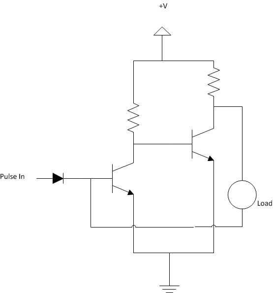 La segunda imagen muestra el interruptor. Esto es simplemente un arreglo de 2 puertas no. Cuando viene la energía en la primera puerta se detiene actual va a la segunda puerta. la falta de energía provoca entonces la segunda puerta permitir que la energía fluya a través de la carga (zumbador LED ect.) y entonces actúa como un segundo impulso en la primera puerta. Esto hace que el ciclo a empezar todo otra vez manteniendo el circuito.