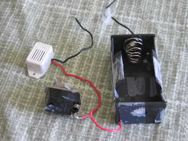 Conecte el zumbador al interruptor y que para el soporte de la batería no conecte los cables del zumbador a soporte de la batería