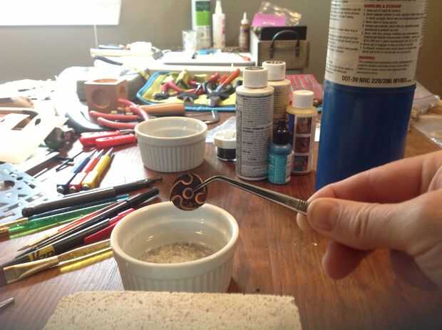 Uniformemente espaciados pedazos de soldadura de plata en el metal y los colocó juntos la forma en que quería la última pieza a colocar. La soldadura tiene un vínculo estrecho entre las dos piezas de cobre y latón. Calientan las piezas poco a poco con la antorcha del propano, porque el flujo comenzará a burbujear y podría potencialmente mude su soldadura por debajo de la pieza. Esto sucedió a mí y resultó en un centrado ligeramente apagado del triskel. Una vez finalizado el hervor pone a cero el metal y había calentado hasta brillaba. He intentado un soplete de butano pequeña, pero tomó mucho tiempo para obtener el metal lo suficientemente caliente. Recuerde también, que la soldadura tiende a seguir el calor. Más avanzada soldaduras técnicas que ayudarán a ser capaces de soldar desde arriba o abajo. Estoy seguro de que voy a comprar más herramientas antes de demasiado largo!