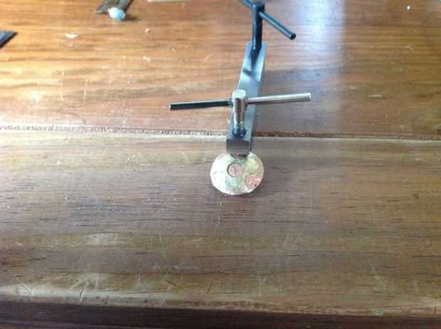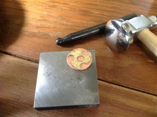 Para mí, esta es la divertida parte. En esta etapa, todo se ve bastante duro. El secado final realmente hará una diferencia enorme! De la soldadura, el metal es agradable y suave (recocido). Usando un martillo de bolita (también llamado un martillo persiguiendo), golpeaba el metal para añadir textura. Luego usé una gota de resina bloque de madera para hacerla convexa. Hice una presentación final en el exterior para que los puntos de ajuste. Hay un montón de opciones aquí. Puede usar estampillas de diferentes, texturas martillos, punzones etc..