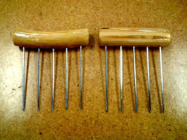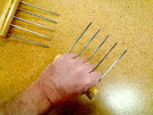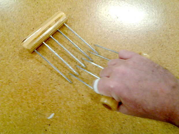 Mi esposa * amores * tira/tiras de carne. Tiró el cerdo, de res, pollo desmenuzado, lo que sea. Yo he sido solo destrozo todo con tenedores de mesa normal y ha estado recibiendo tedioso. Ahora tienen estos poco agradable plástico/epoxy los en línea llamados "Lobo patas" o "Tener patas". No son muy caros. En mi experiencia estas cosas tienden a romperse para mí. Que normalmente no me molesta tanto porque entonces tienen una excusa para pegar detrás junto y fortalecerlos en el proceso. En este caso, sin embargo, pensé que yo podría hacer algo mejor desde cero. Así con algunos pinchos de metal baratos y algunos desechos madera era capaz de hacer algunas trituradoras de carne bastante útil. Al final terminan pareciendo mucho las garras de Wolverine (de los X-men). Así que deben ir grandes en las fiestas de barbacoa este verano.