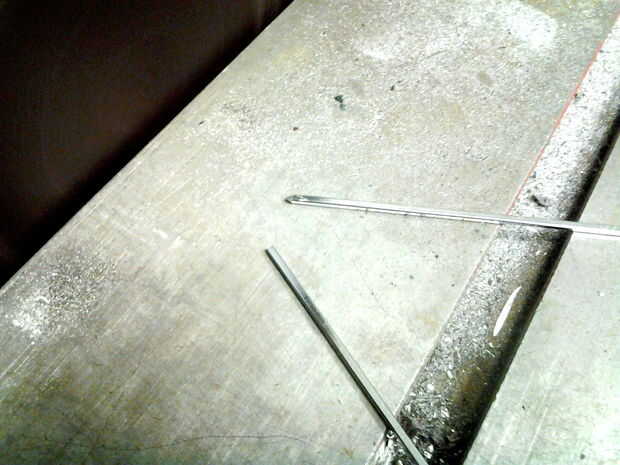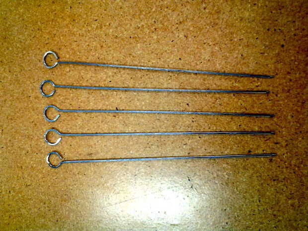OK ahora solo queremos que cortamos nuestros pinchos a la misma longitud. Corté mis en cerca de 5 pulgadas (13cm) de largo. Una de las razones por las que elegí esta longitud fue porque sería lo suficientemente largo y sería capaz de obtener dos conjuntos de dientes de cada pincho. También corté 5 pinchos porque quería 5 púas en mi trituradoras.