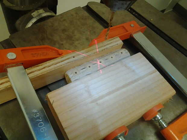 Entonces es sólo un mater de ajuste de la profundidad en el taladro de modo que todos los agujeros de la misma profundidad. Esto es algo importante, pero algo no debería tener demasiado problemas haciendo incluso si no tienes acceso a una prensa del taladro. Perforé mis agujeros de entre 1/2" y 3/4" (15-20 mm) de profundidad.