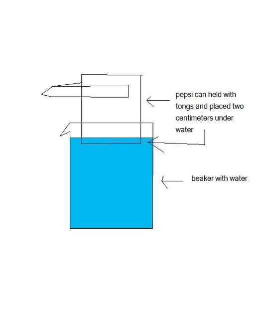 ahora espera el pepsi puede con pinzas por debajo no en la parte superior entonces el vaso o la taza y tapa el pepsi puede boca abajo para que la parte de apertura es hacia abajo y lo puso cerca de dos centímetros bajo el agua (ver foto 1)