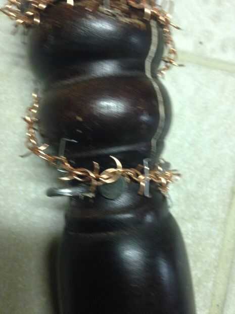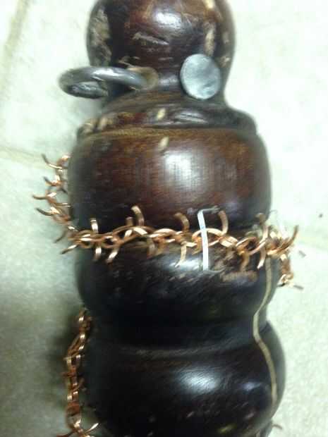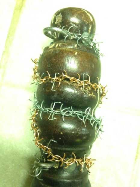 luego enrolle la cadena alrededor de club asegurándola con clavos/grapas a lo largo de la manera.