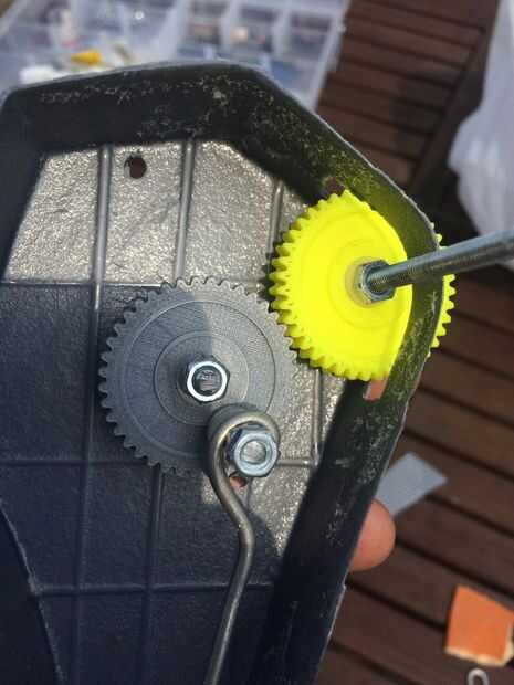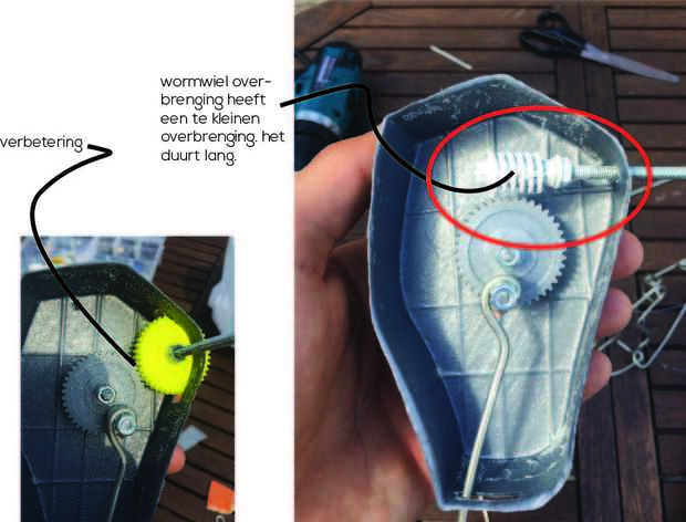 > plaatsing ander tandwiel wat het oude aandrijft.