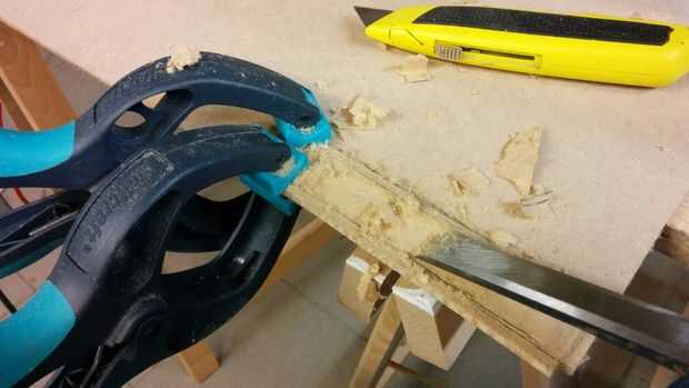 Luego al pila de piezas y pegarlos juntos, y ahora se puede lijar la forma de la manija tal como desea que sea. Iniciar con rejilla 60 del papel mismo curso y trabajar su camino hasta 320. Hasta que tenga la forma deseada. Use pequeños pedazos para hacer un bulto cerca de la madre para detener la manija de desplazamiento a través de su mano.