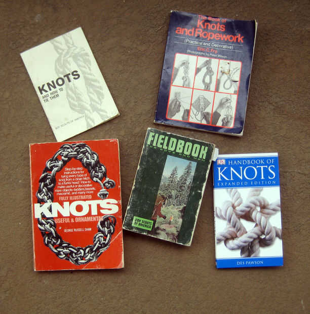 Este es un excelente libro que contiene las instrucciones básicas sobre cómo hacer una gran variedad de nudos prácticos y decorativos. Sus diagramas dibujados a mano son bastante fáciles de seguir, aunque a veces es difícil leer el texto escrito a mano. - Manual de Boy Scout