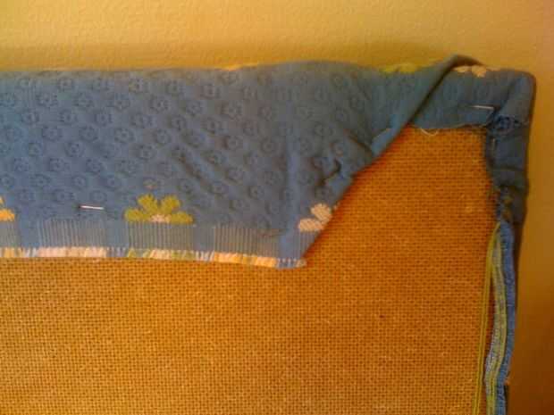 Haciendo los cojines era bastante sencillo. Hemos trazado la tela en el piso, boca abajo. Poner la espuma en él y luego colocar el tablero de abajo, coincidencia de todo uniformemente. Comience en una esquina y estire a la tela para arriba y empezar a grapar. Fue un poco de ensayo y error, y llegamos mejores, ya nos fuimos a lo largo, pero en general funcionó bastante bien. Las partes más difíciles son las esquinas. Usted podría intentar hacer unos cortes en las áreas por debajo de un pliegue bonito y menos traslapo.