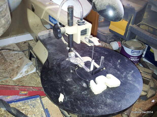 Utilizando una sierra de contornear recortar todas las piezas y luego lijar los bordes ásperos. Asegúrese de que todas las piezas se ranura juntos.