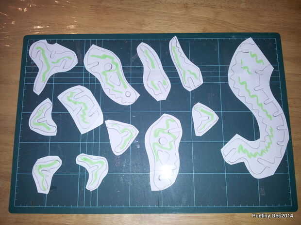 Utilizando el rompecabezas original trabajar que piezas son necesarias para la cabeza y cuello de montaje. Estos cortar y pegar a la madera (yo uso montaje en aerosol mientras que pela otra vez fácilmente)