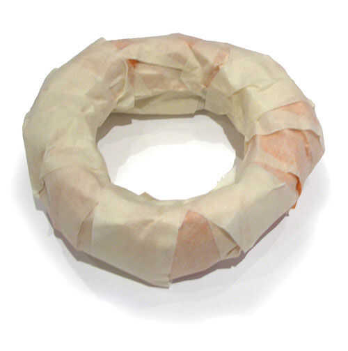 Cubrir la forma de Donut todo con cinta de enmascarar. Sólo va una capa de espesor. Cuando se han cubierto el doughtnut completamente con cinta adhesiva, tendrás un donut de aspecto muy fino. No te preocupes, vas a granel para arriba con la bolsa siguiente en el paso siguiente.