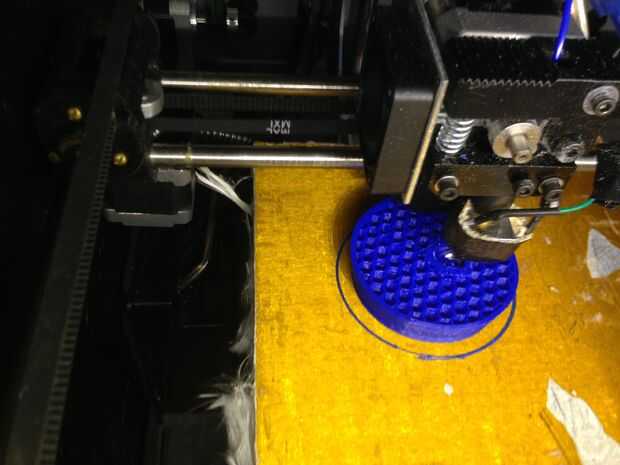 Otra ventaja de la impresión el trofeo en 2 piezas es que puedo usar un color diferente para la Copa. No tenía ningún filamento rojo me fui con el azul.