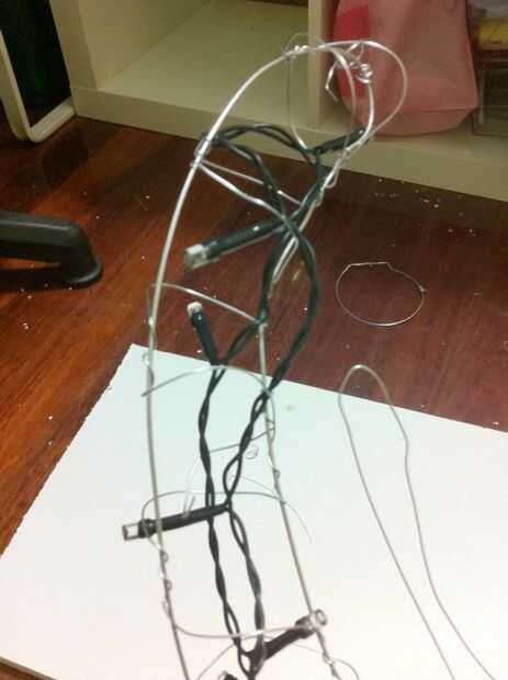 4. recomiendo hacer pequeños ganchos en cariada colocado dentro de la cabeza de los ciervos, se trata de la ayuda a mantener las luces en su lugar. Algunos en la cornamenta, montones dentro de la cabeza y algunos en el cuello.