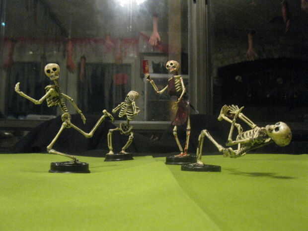 me encanta Halloween, encantan las fiestas, me encantan las celebraciones y concursos todo en diversión. Me encanta esqueletos, todas las formas, tamaños y calidades; blucky Bucky, de molde, de golpe, cada uno tiene su propio lugar especial en mi corazón. Me fascina particularmente con los más pequeños que se pueden encontrar en tiendas de dólar. Yo los uso para cargas de diferentes cosas, pero en este caso, voy a usar para hacer trofeos de Halloween! Nuestra ciudad es poner en un "evento de zombie" este año, me pidieron para crear algunos trofeos para primer, segundo y tercer lugar. (He añadido una "mención honorífica" uno en la mezcla). Se trata de cómo se hace.