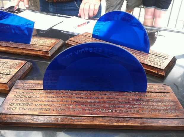 el mes pasado un par de mis compañeros de equipo hicieron trabajo impresionante en sus proyectos y merecen reconocimiento. Decidimos añadir algún toque personal al regalo creando unas con diseño 123D en línea! Aquí ha venido un trofeo personalizad
