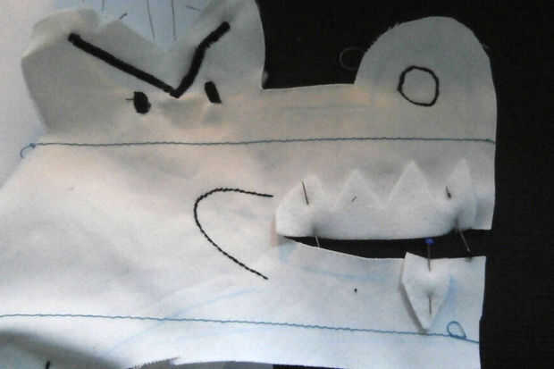 Algunos dientes enojados del paño grueso y suave de cortar y luego coser el cuerpo.