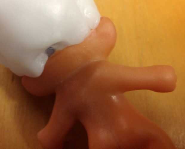 Orientar rápidamente ShapeLock alrededor de la esfera de LED y Troll cabeza que es fijado por amasar el material a las áreas cerca del borde de la cabeza de Troll. Asegúrese de que el botón es expuesta y accesible. Como ves en este mantenimiento de la imagen el botón esfera clara de plástico es fundamental. Una vez que el plástico endurece lo es muy tedioso quitarlo.