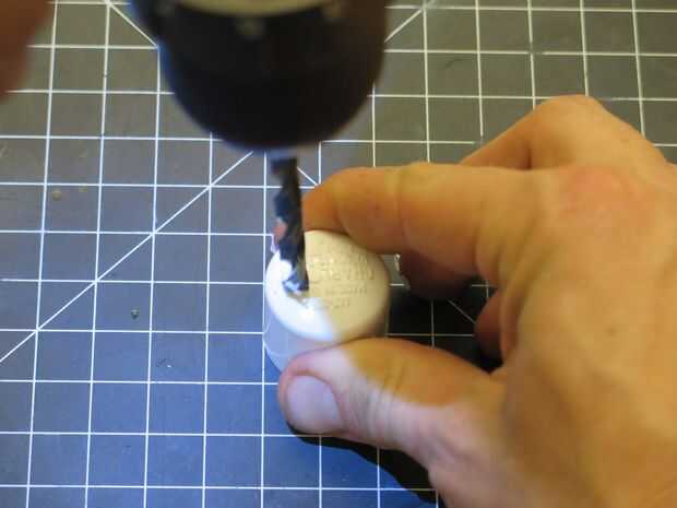 Presione en la tapa del PVC en el lado opuesto del globo. Taladro un similar tamaño agujero fuera del centro en la tapa del extremo. Corte dos flexi-paja que va a guardar la larga pierna de ellos sin la parte flexible.
