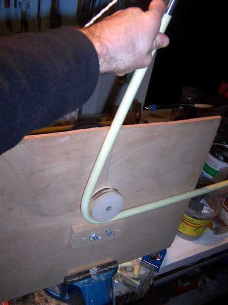 Antes de que la curva tienes que poner el resorte curvado en el tubo. Si no tienen o no pueden les prestó usted podría intentar llenar los tubos con arena y cerrarlas con un corcho o algo (no he probado esto con pvc pero delgada con tubos de cobre antes y que trabajó).