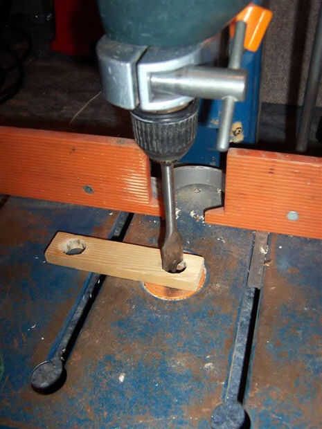 Primera medida la distancia entre el centro de los tubos de 3/4" pieza del tubo y firmar esto en uno de los trozos de madera. Sobre estos puntos taladre un agujero con un taladro de 3/4 de velocidad. No perforar inmediatamente a través de pero cuando el punto del taladro está en el otro lado, la vuelta la madera y taladrar desde el otro lado. De esta forma que no tendrás ningún astillas en los bordes.