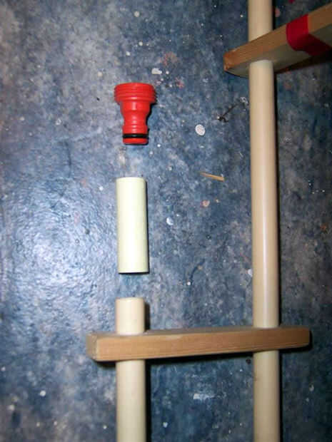 Para adaptarse a la boquilla en el tubo de 5/8" tendrás que poner un conector para ese tamaño en él. De esa manera realmente cabe bien en el tubo. No es necesario cola pero si lo desea, puede utilizar pegamento de pvc duro.