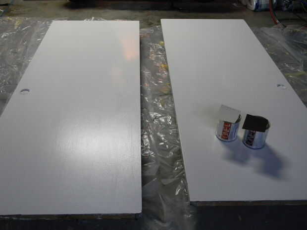 Limpiar las puertas, asperezas de la arena (si es necesario) y primera (si es necesario). Ya que mis puertas eran blancos, no ceba.