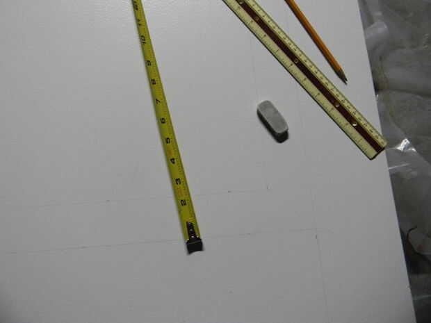 Esbozo de los paneles de puerta. Usé dos paneles verticales, cada uno con un borde de 2 pulgadas. La junta central era una altura de 4", y opté por mantener el encabezado y el pie un poco más ancha que la junta central. La Junta de la cabecera era ligeramente más grande que el pie de página puesto que estos paneles se cuelgan tal que la pulgada superior o que se oculta. Dos placas ancho de 4" corren a lo largo de los lados de los paneles, a la altura de la puerta (ver esquema). Estas dimensiones se pueden escalar más o menos para cualquier tamaño de puerta.