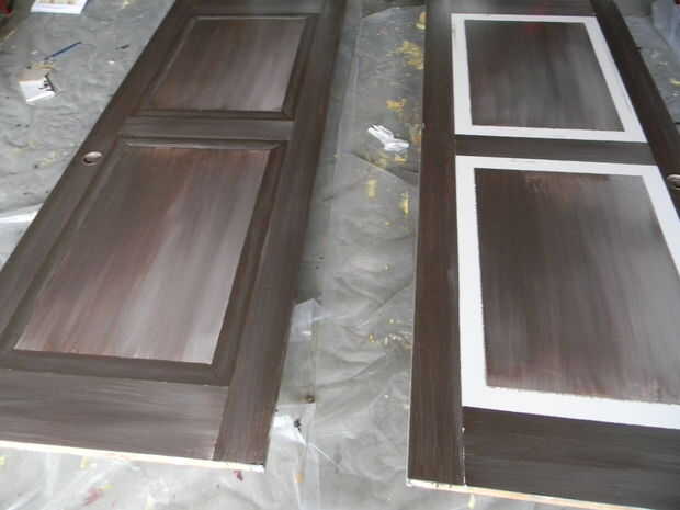 Las fronteras del panel luego se pintan con los pinceles más pequeños. Utiliza una brocha de 1" con la pintura oscura para crear una capa base, luego agregar la crema para crear una porción iluminada. El color de la luz fue mezclado con la oscuridad para una transición suave.