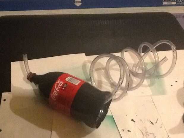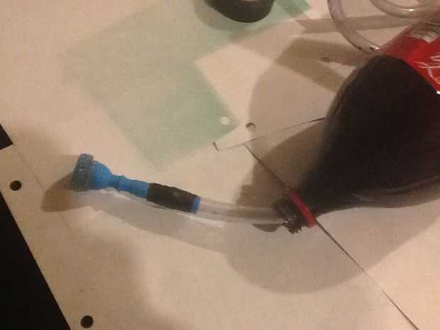 Utilizamos pesos (botellas llenados de pesos específicos del agua teñida para representar el peso real de un gas therm de carbono en el combustible, oxígeno para la combustión, CO2 de contracción (consumo de tubería) y equivalente CO2e de fugas de me