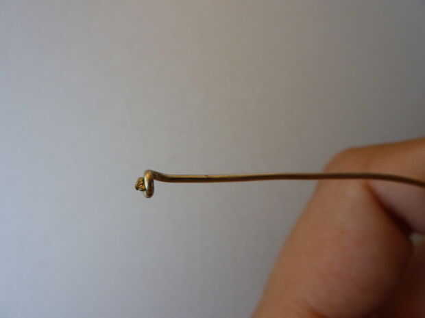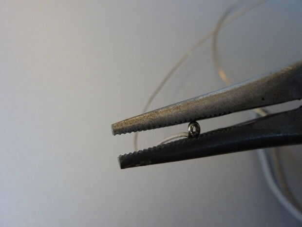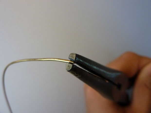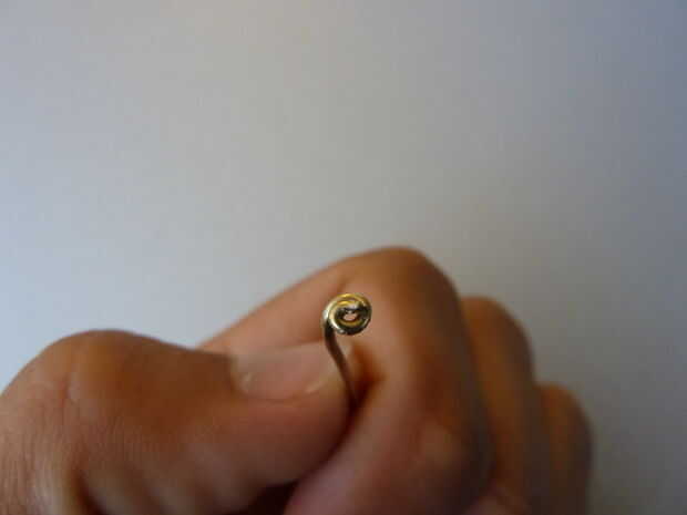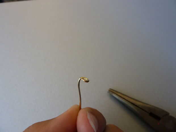 Tomar sus alicates y agarrar como poco alambre en un extremo como sea posible. Gire las pinzas alrededor haciendo forma de gancho. Apriete el gancho con sus pinzas para hacerlo tan pequeño como sea posible, tratando de mantener el filo en. Doblar el alambre por lo que es perpendicular a los rizos que acaban de producir y ahora tienes una boquilla!