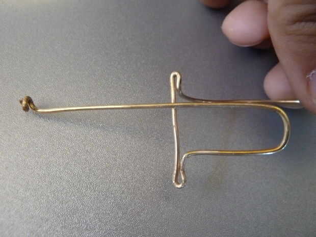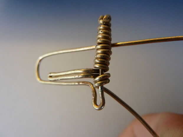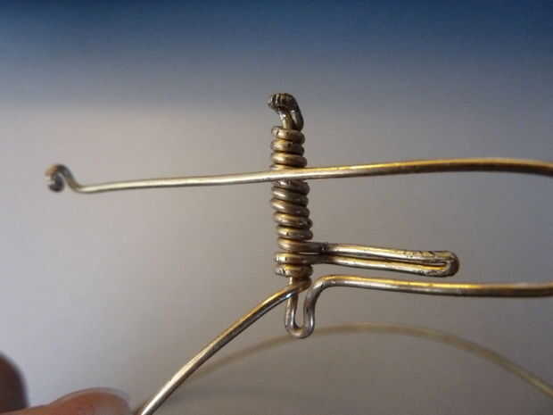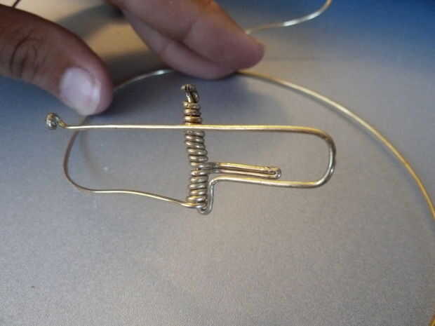 Mantenga el cable hasta el cuadro de referencia, donde debería estar la primera válvula, hacer una curva hacia abajo (imagen #1). Luego, una vez más en comparación con su referencia, realizar una curva pronunciada hacia arriba (2). Luego otra fuerte curva hacia abajo en la parte superior de la válvula es (3). Luego, doble el alambre hacia atrás y en la tapa de la válvula sería (4). Para hacer la parte superior de la válvula, doblar la punta de la curva que acaba de hacer por lo que es plana (5). Entonces bobina de arranque (6, 7), si las bobinas están demasiado flojas apriételos con tus alicates. Seguir enrollando hasta llegar a donde está la corredera de la válvula. Sólo doblar el alambre hacia fuera y hacia atrás y continuar con su bobina (8, 9, 10). Ahora deje y enderezar todo lo que ha conseguido fuera de control durante este proceso.