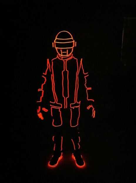 Tron. juego de Daft punk el alambre! disfraces de HalloweenPresentado mi diseño con hilo amarillo, luego ordenó a unos 100 pies de alambre. El color que elegí fue rojo-naranja. Mano cosió el cable con una chaqueta de cuero y vaqueros regular con acab