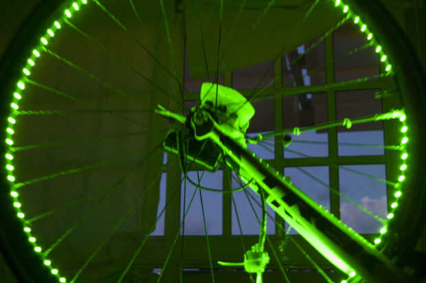 he comprado un Monovelo Monowheel unos años atrás. Creo que eran primeros vistos en los Juegos Olímpicos de Beijing 2008. La empresa que les vendió a público después. Ya vienen con o sin leds en ellos. Si usted consigue uno con, usted tiene 3 opcione
