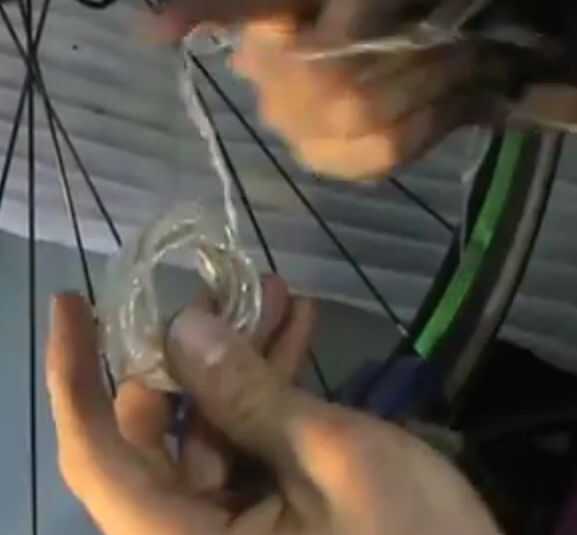 2. Una vez que usted hace que se enrolle el cable entero 2 tuyo los dedos y agarra la pelota y le hizo pasar por todas las radios, como se describe en el video