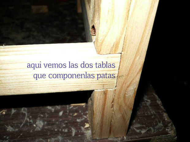 Para solucionar el problema de las dimensiones de las tablas, tablas de las cortado con patas de las dimensiones de las. Para darle el grosor harmonización, juntas de puesto dos tablas, encolare posteriormente. De momento solo las atornillare. El motivo es quiero "cajear" patas de las sierra de con la hacer "podran se casi todas las uniones", de forma mas comoda. En la segunda foto se ve la idea. Para unir el travesaño con la pata, basta con cortar una de las tablas, con las dimensiones del travesaño.