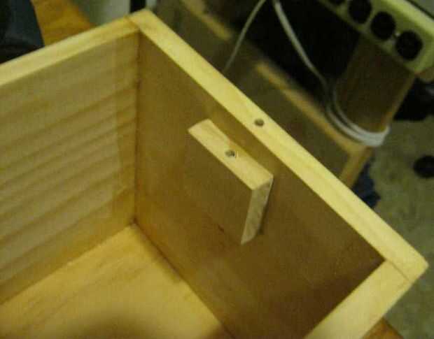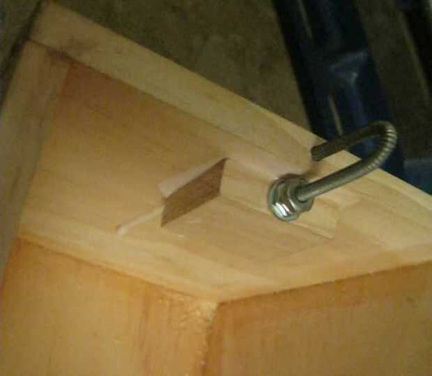 En este paso, se hace un cierre de resorte. El mecanismo debe ser resorte para mantener el bloqueo contra la tapa para suprimir la vibración mientras la bicicleta está en movimiento. No será muy tranquila ya que una caja de madera es mucho como el cuerpo de una guitarra y puede amplify(?) algunos sonidos, pero sin duda ayuda a: