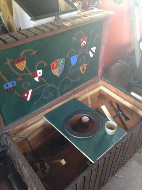 Por supuesto no pensaba cómo esto haría que un fresco instructable haciendo el pecho por lo que lamentablemente no tengo las mejores fotos del interior mecanismos. un motor de limpiaparabrisas de 12V (comprado de http://www.monsterguts.com) fue asegurado al bloque de montaje. el acoplamiento de bola fue quitado y una barra de la extensión fue agregada con armas que permitan el bludgers mover. los brazos estaban bien afinado y cambiado como encontramos problemas; los brazos madera con que empezamos no permanecería en el lugar después de unos 10 minutos de tiempo de ejecución. después de cambiar a los lazos de la correa metálica sujeta con tuercas de seguridad, encontramos que al final de los lazos incluso después de ser redondeada causada gubias en la parte inferior de las bolas de bludger, tuvimos tapas de PVC en mano trabajó para evitar daños en las bludgers.