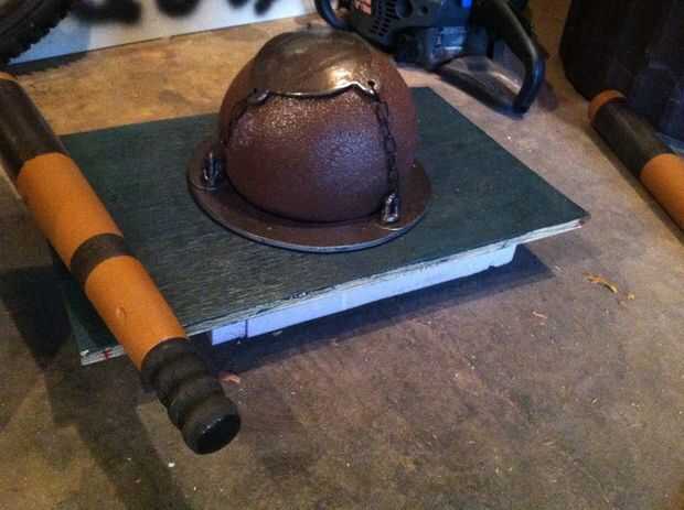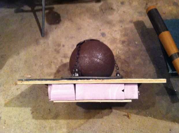Una vez que tuvimos el brazo descubierto pensamos que era sólo una cuestión de poner todo Junta y añadir pintura, nos equivocamos. las bludgers terminó siendo demasiado ligeros y horas extras los brazos por debajo de golpearon convertiría, ya que no quería dar vuelta, que arruinó la lucha contra el efecto de las cadenas que íbamos para, teníamos que idear un sistema que permita las bolas golpear de abajo pero no quedar atrapados en el movimiento de los brazos de giro. nos acomodamos en un marco de aislamiento de la espuma sobrante y listones de madera vivienda un pedazo de espuma estera cuando golpeó los brazos sería empujado en las bolas lo que permite un movimiento de salto en lugar de un movimiento de giro. No es sofisticada de pretty, pero trabajó y fuimos capaces de hacerlo con retales de otros proyectos.