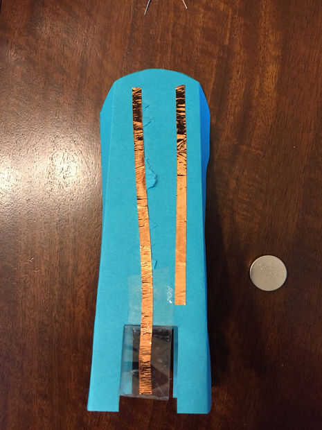 Añadir dos tiras de cinta de cobre en la parte trasera del trono. Una tira más corta corre a la derecha y una tira subirá en el lado izquierdo y se extiende hacia abajo la lengüeta.