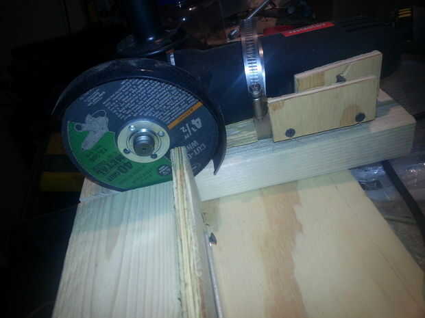 Este paso variará basado en el molino. Corté un pedazo de madera contrachapada de la anchura de la amoladora. Luego vinieron dos piezas verticalmente para crear una c en forma de canal para la amoladora en. Es importante para el interruptor de encendido y todos los controles de fácil acceso.