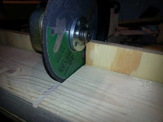 En la parte posterior de la cerca utilicé dos tornillos para hacer un soporte para el eje de la amoladora llave para que sea útil para los cambios de la hoja.