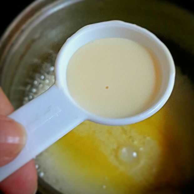 (e) añade la leche y la vainilla (opcional). Cocine otro minuto para espesar más.