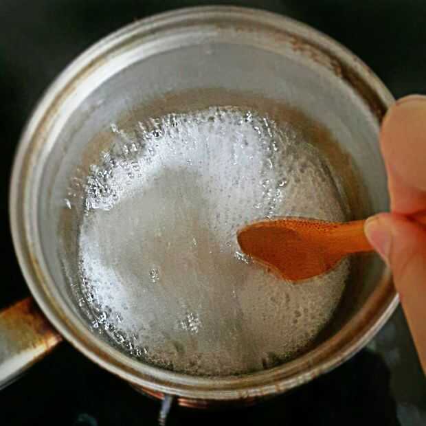 (b) revolviendo a menudo hasta que el azúcar se disuelva completamente. Continuar a hervir.