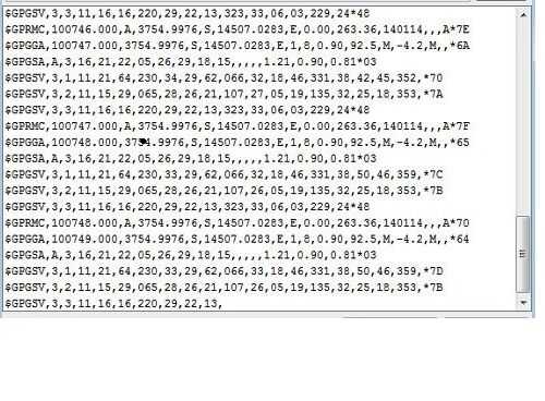 Las lecturas de GPS desde el módulo siguen formato NMEA. NMEA es Asociación electrónica marítima nacional.