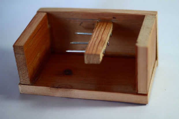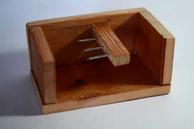 Aquí otra vez una muy cuidadosa planificación es necesaria y algunas cosas deben tenerse en cuenta. Se pega la segunda ranura en la parte inferior de la tapa y usted debe asegurarse de que hay suficiente espacio para él delante de la primera ranura. Otra cosa, la primera ranura debe ser hacia la derecha/izquierda del centro de la caja (se puede ver en la imagen que dibujé una línea central a lápiz). Entonces debe ser la ranura de la tapa hacia el lado opuesto de la línea central.